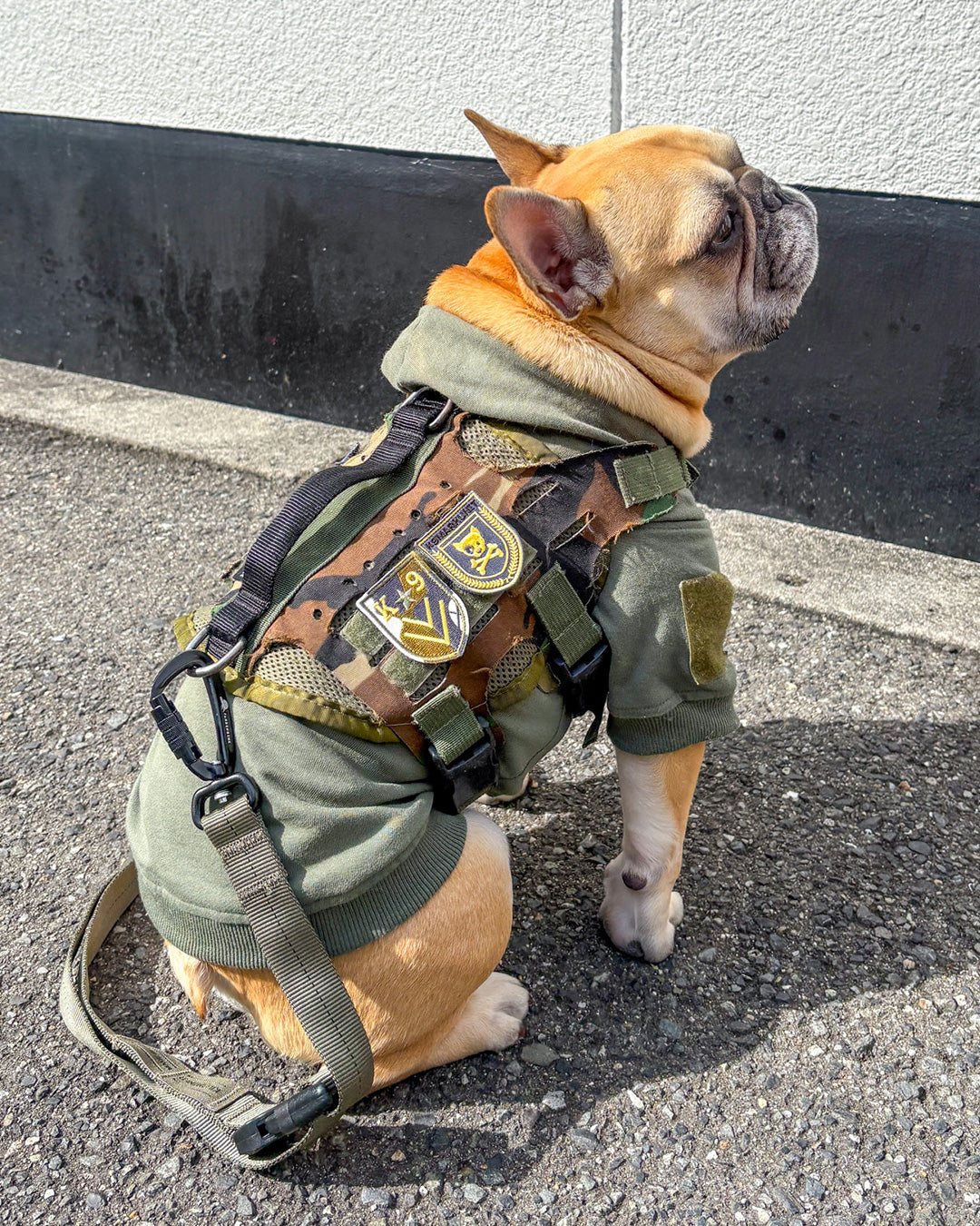 裏面は面ファスナーなので、アイロンや穴あけの必要も無く、簡単にハーネスやリードに貼り付けてカスタマイズが楽しめます。