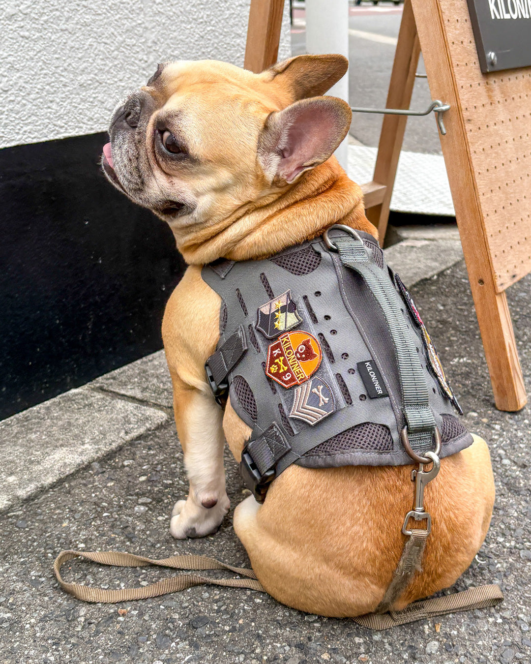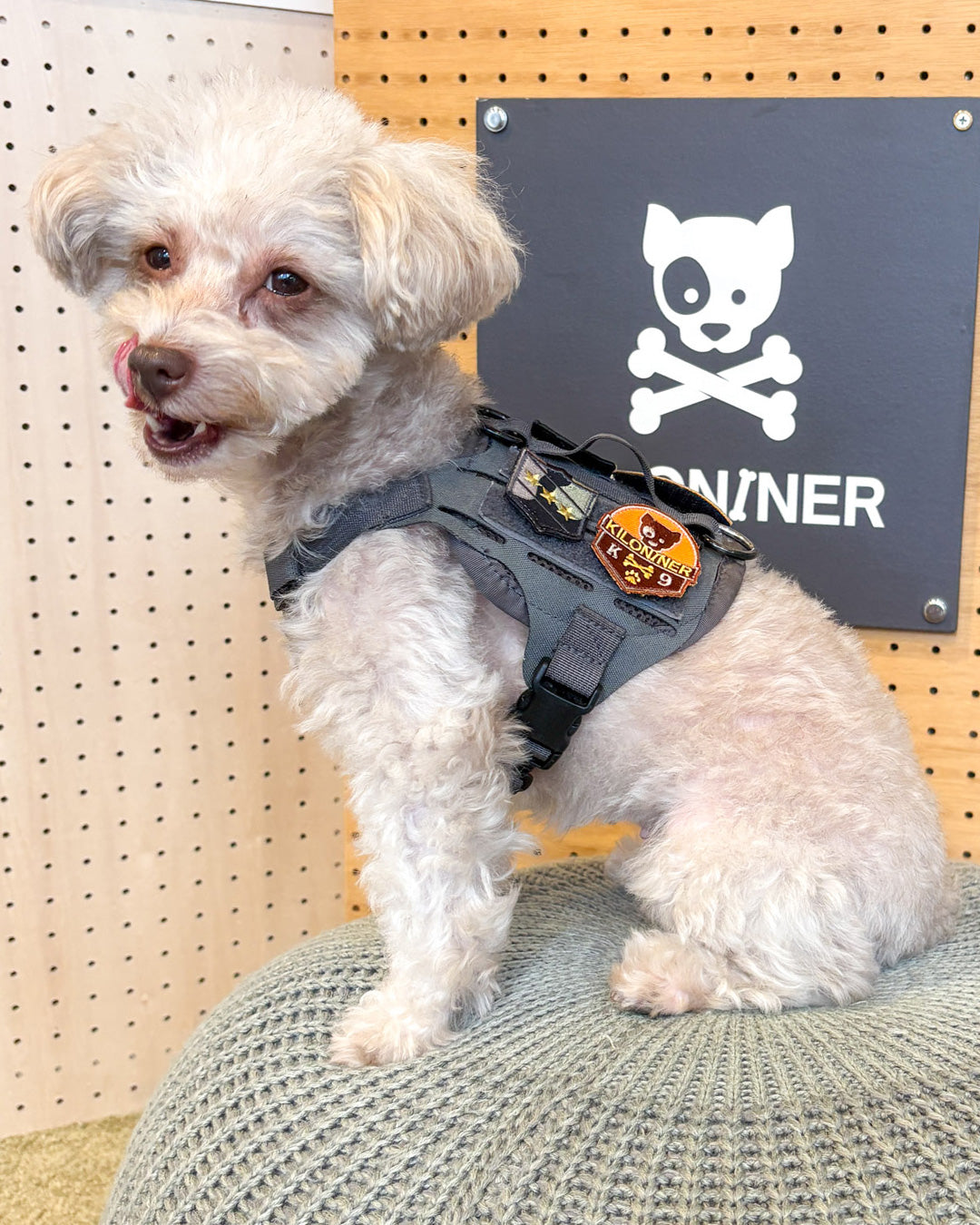 裏面はマジックテープ(ベルクロ生地)なので、アイロンや穴あけの必要も無く、簡単にハーネスやリードに貼り付けてカスタマイズが楽しめます。