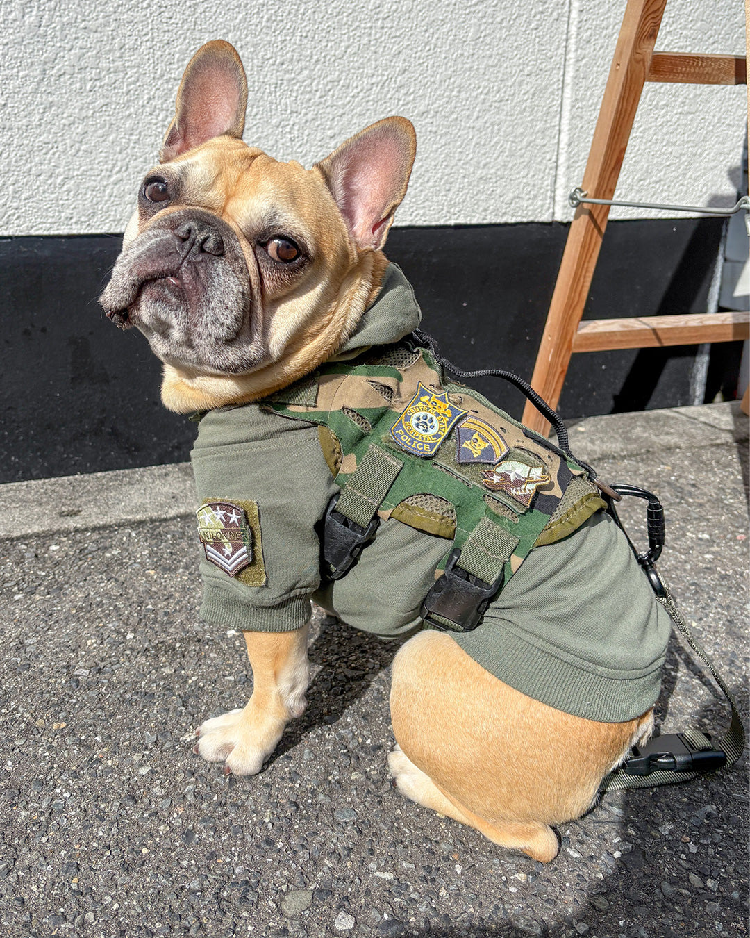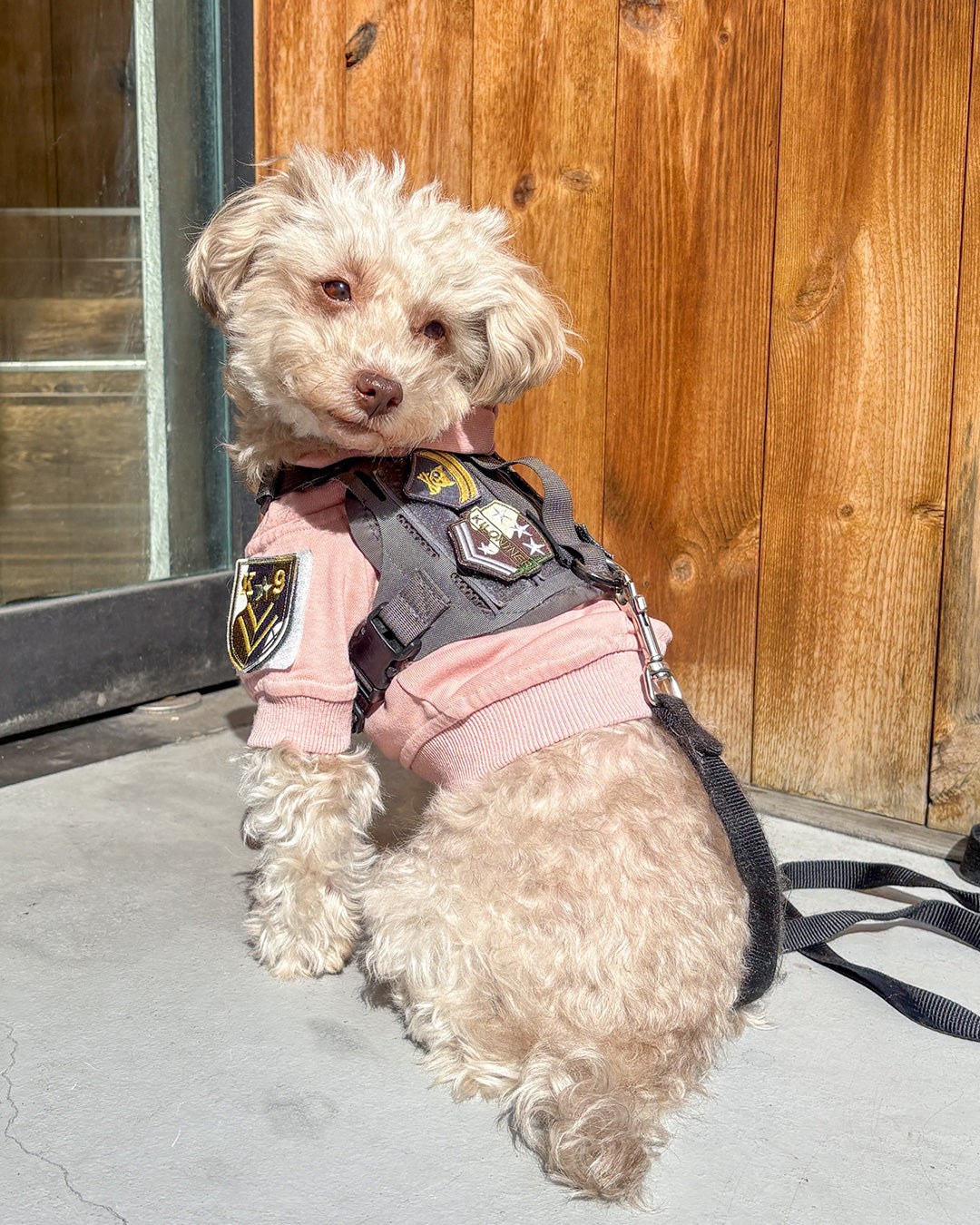 裏面は面ファスナーなので、アイロンや穴あけの必要も無く、簡単にハーネスやリードに貼り付けてカスタマイズが楽しめます。