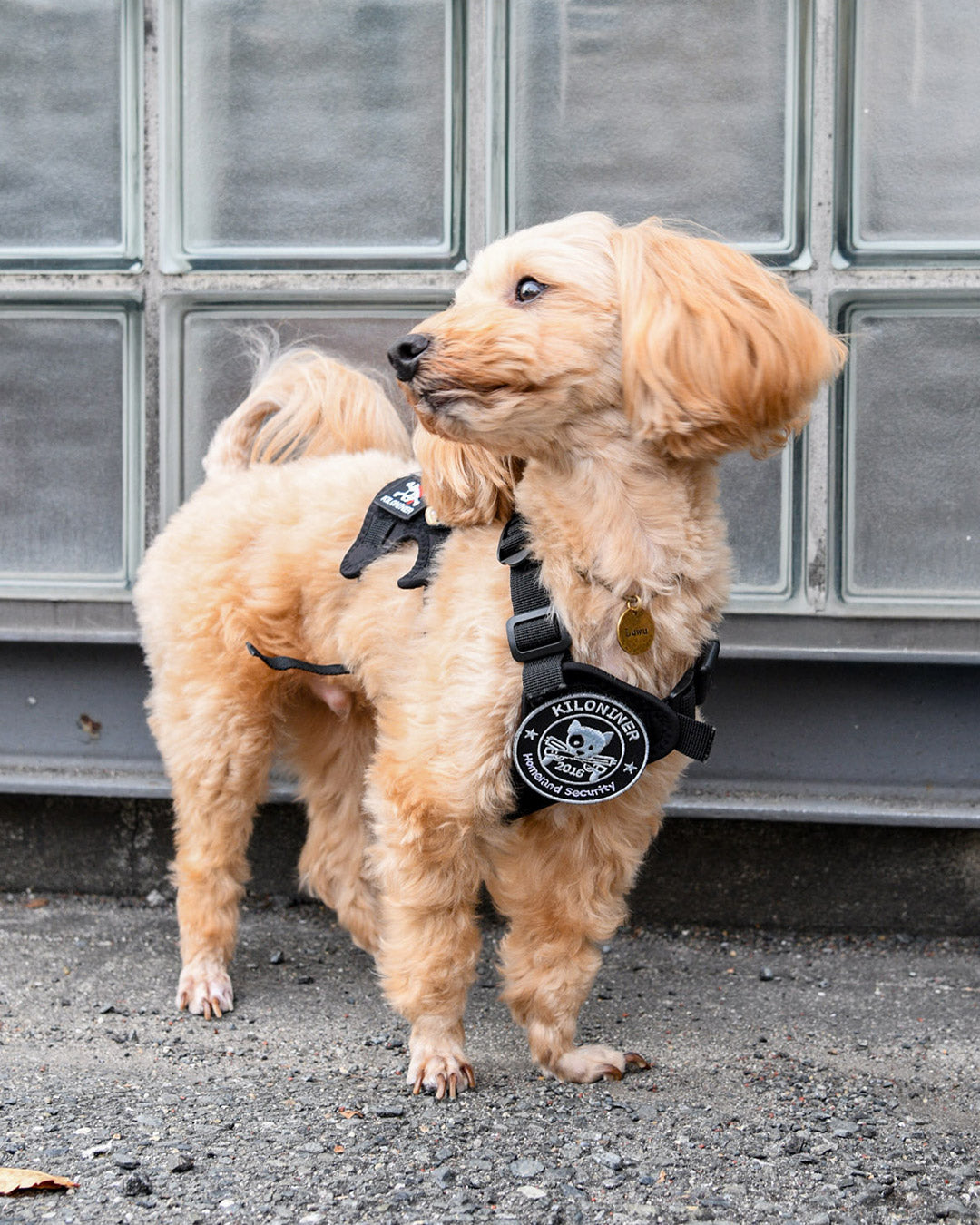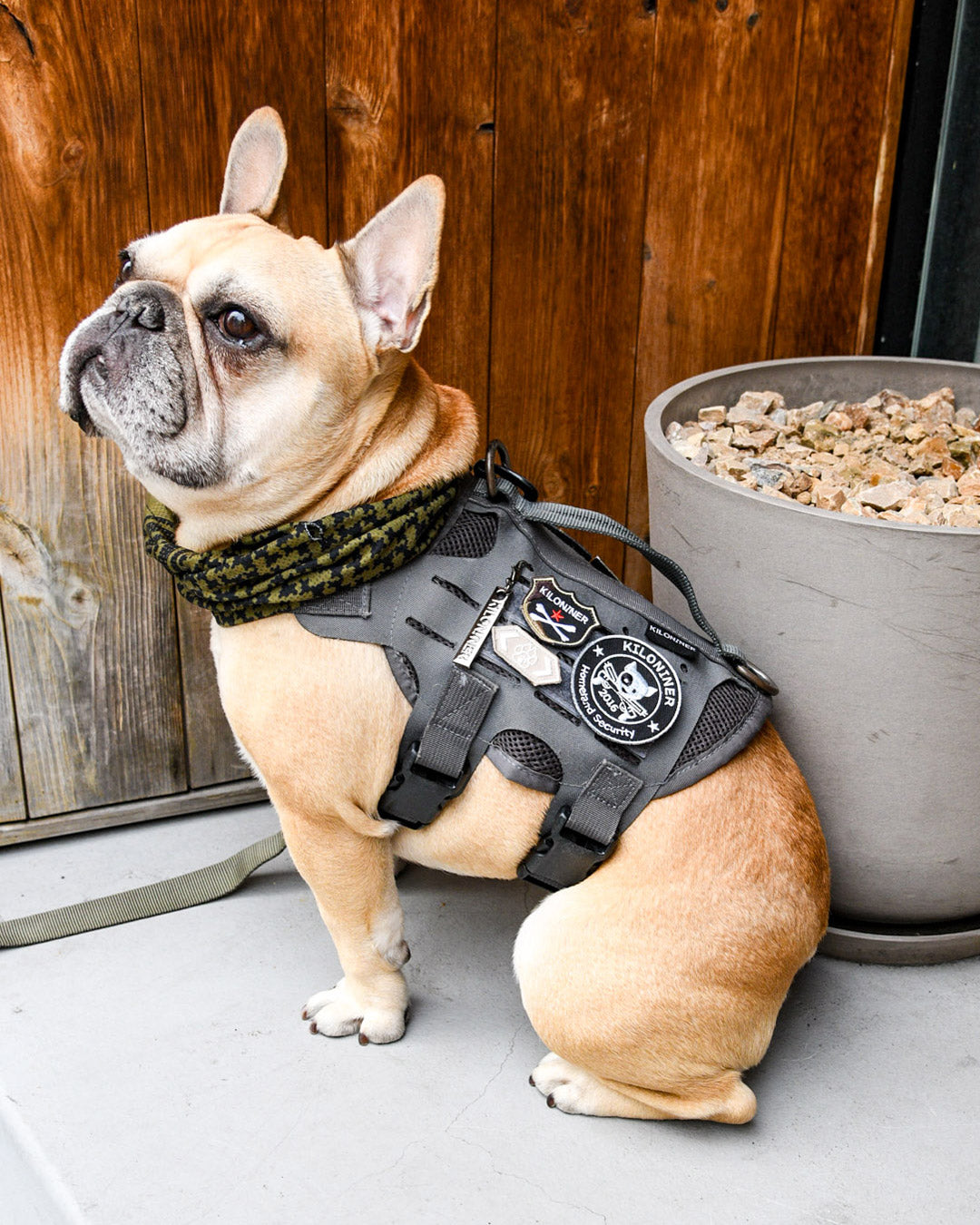 裏面は面ファスナーなので、アイロンや穴あけの必要も無く、簡単にハーネスやリードに貼り付けてカスタマイズが楽しめます。