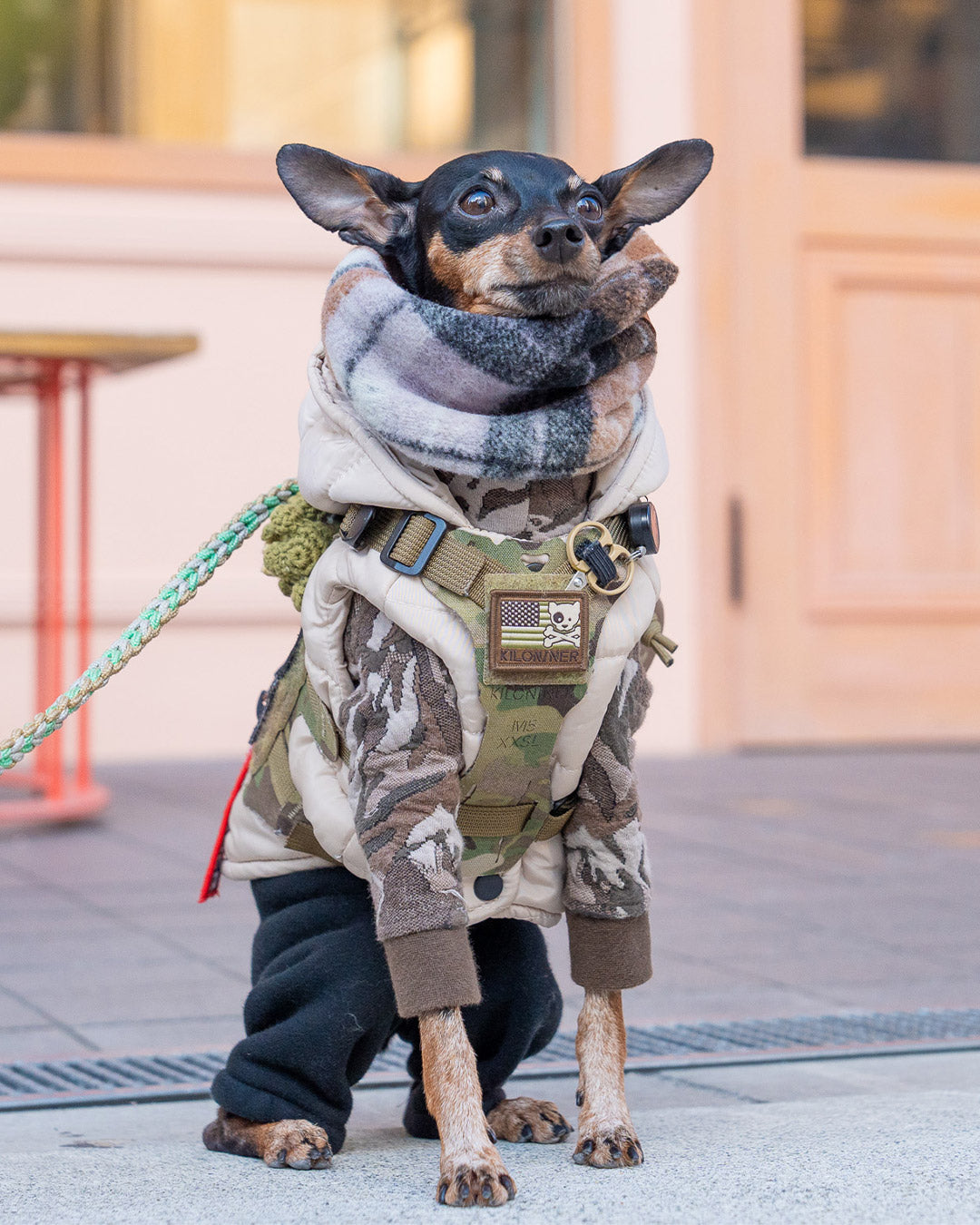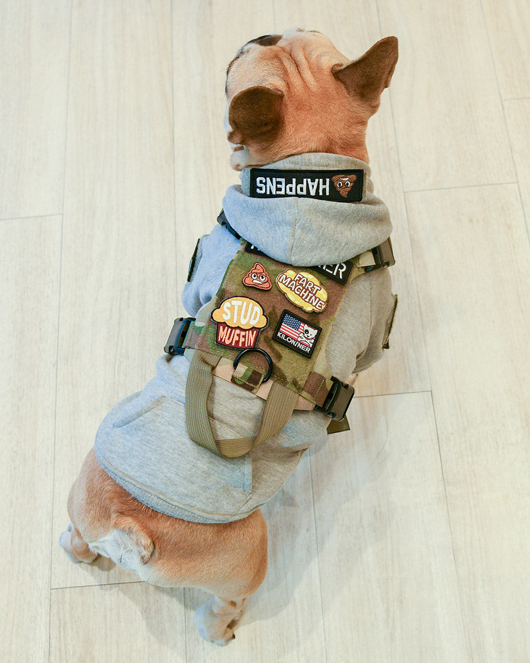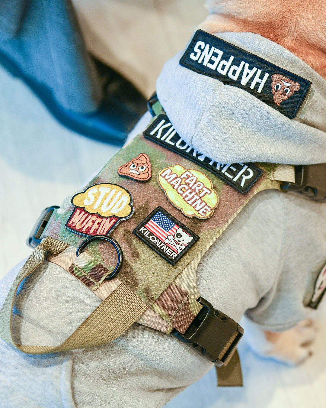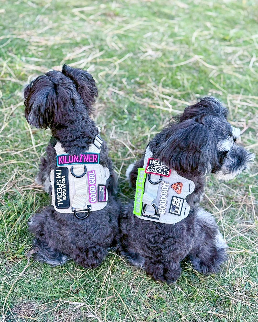 裏面は面ファスナーなので、アイロンや穴あけの必要も無く、簡単にハーネスやリードに貼り付けてカスタマイズが楽しめます。