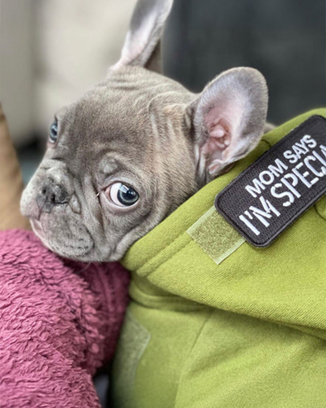 「ママは私を特別だと言う」といった意味のパッチです。ママが可愛がっているワンちゃんにどうぞ!