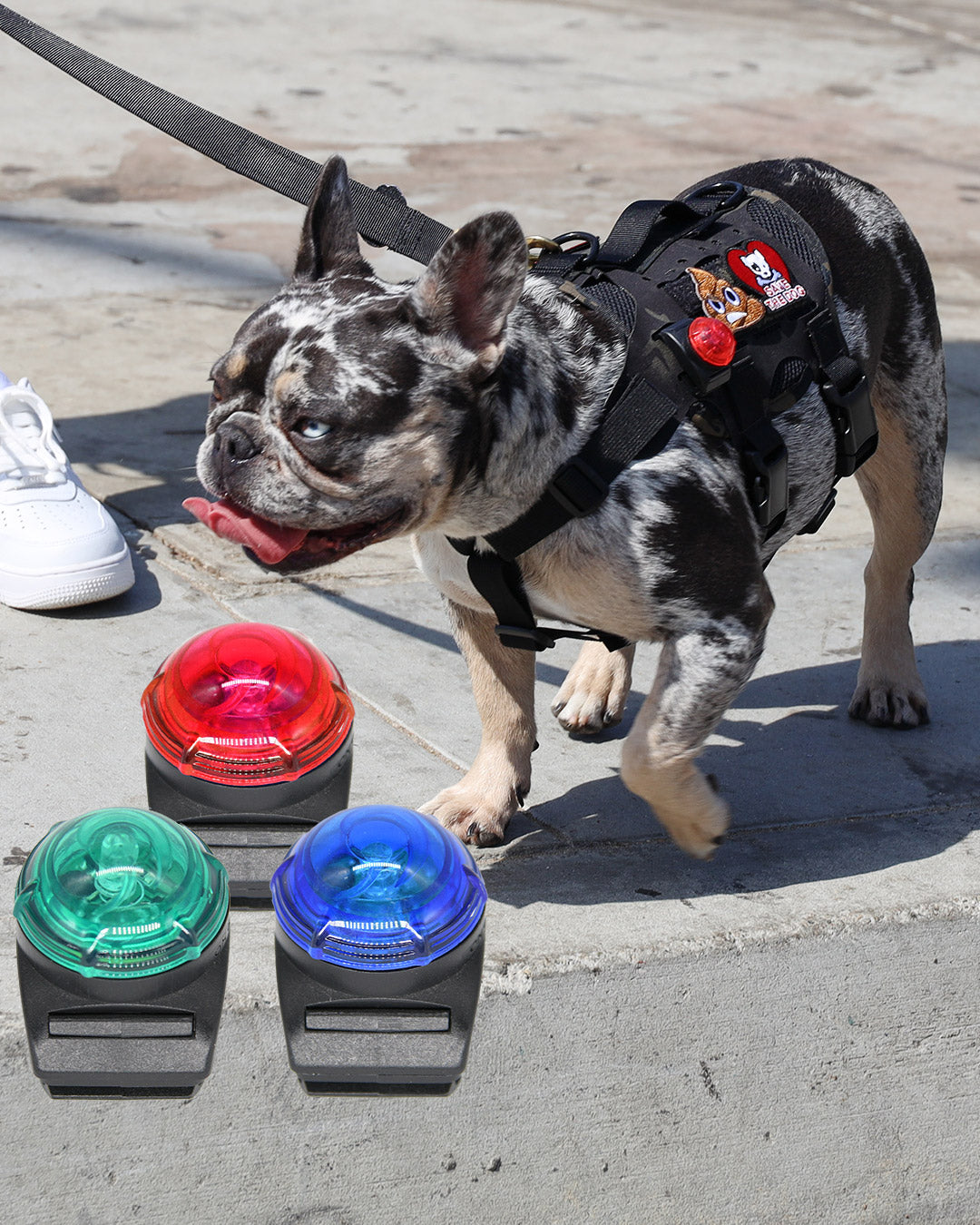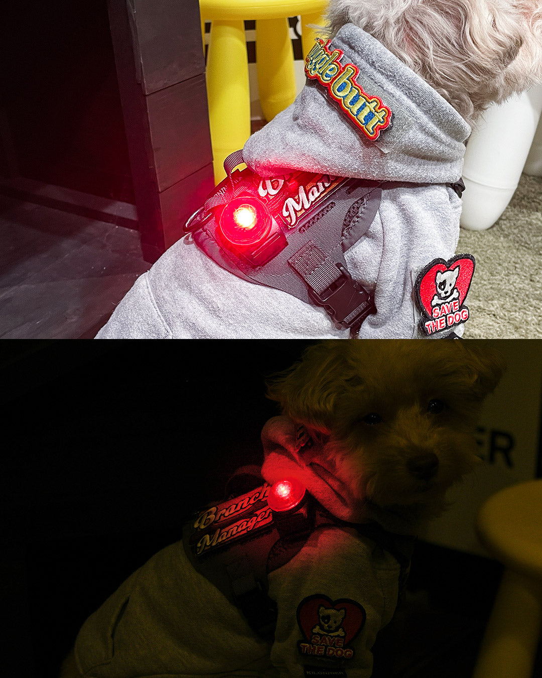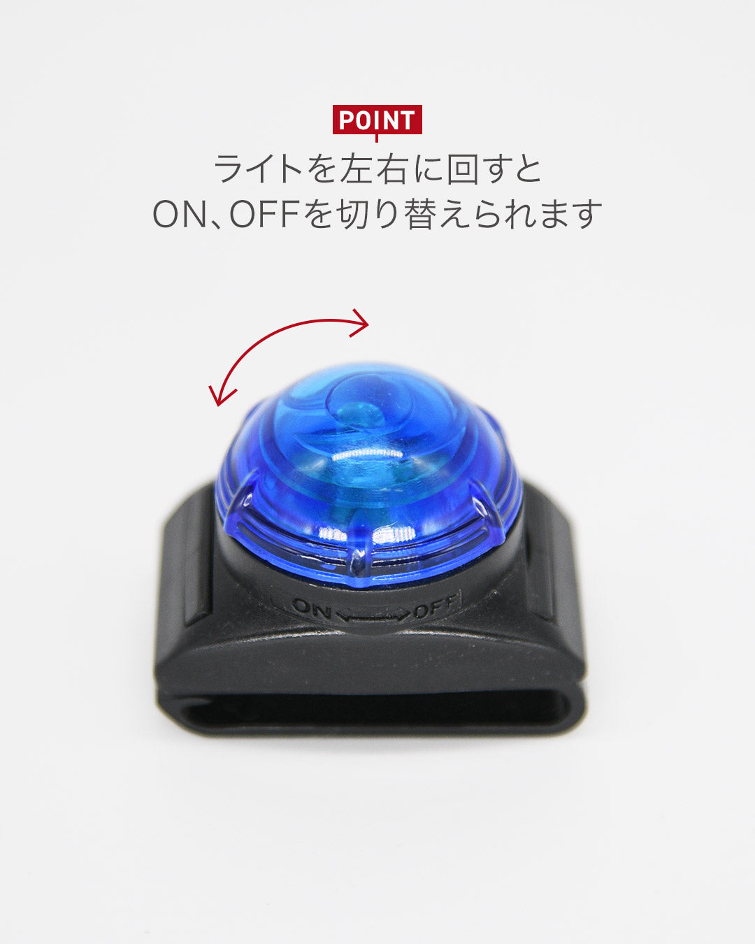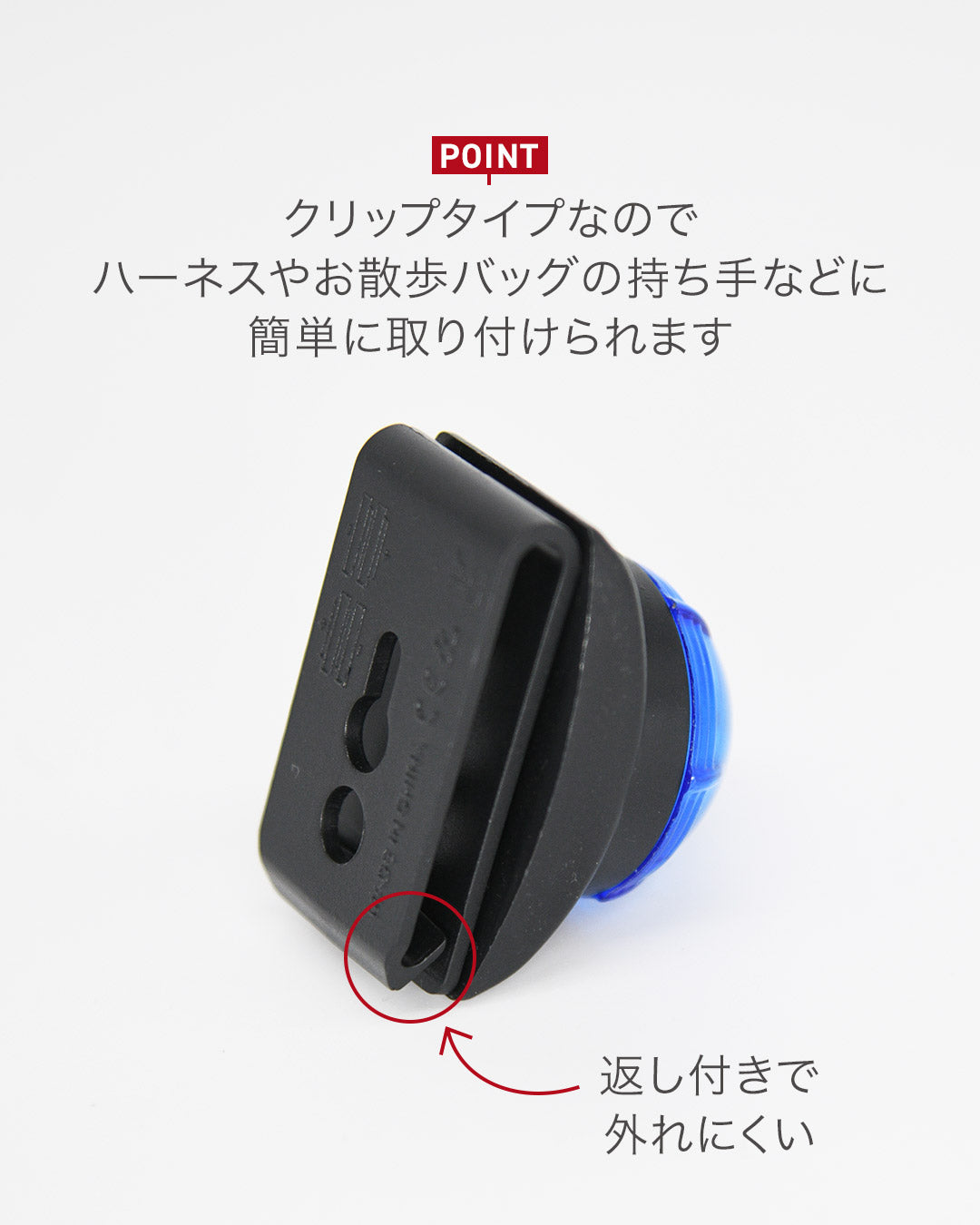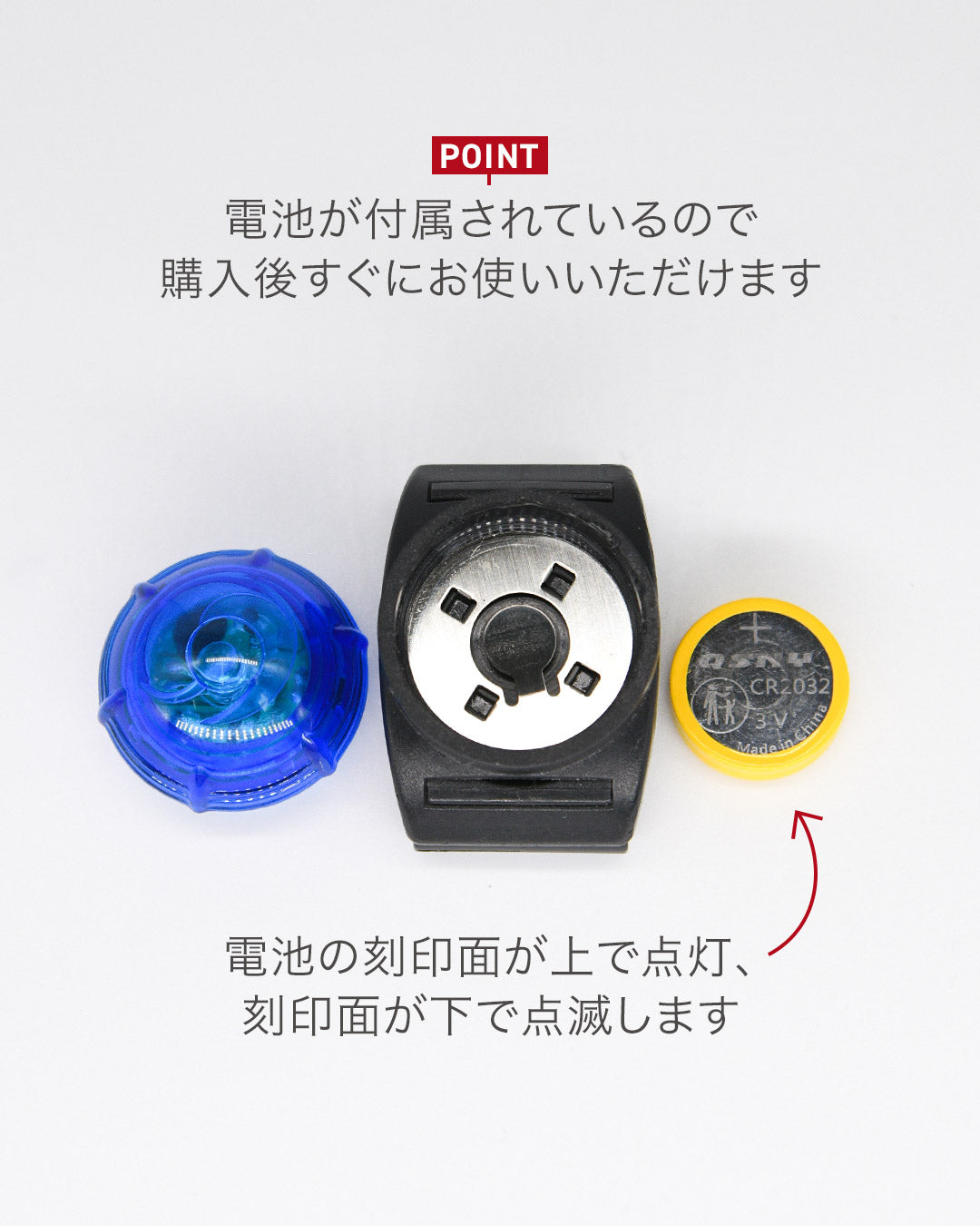 暗い場所でもペットの位置がわかるセーフティライトです。コイン電池が付属しているので、ご購入後すぐにお使いいただけます。