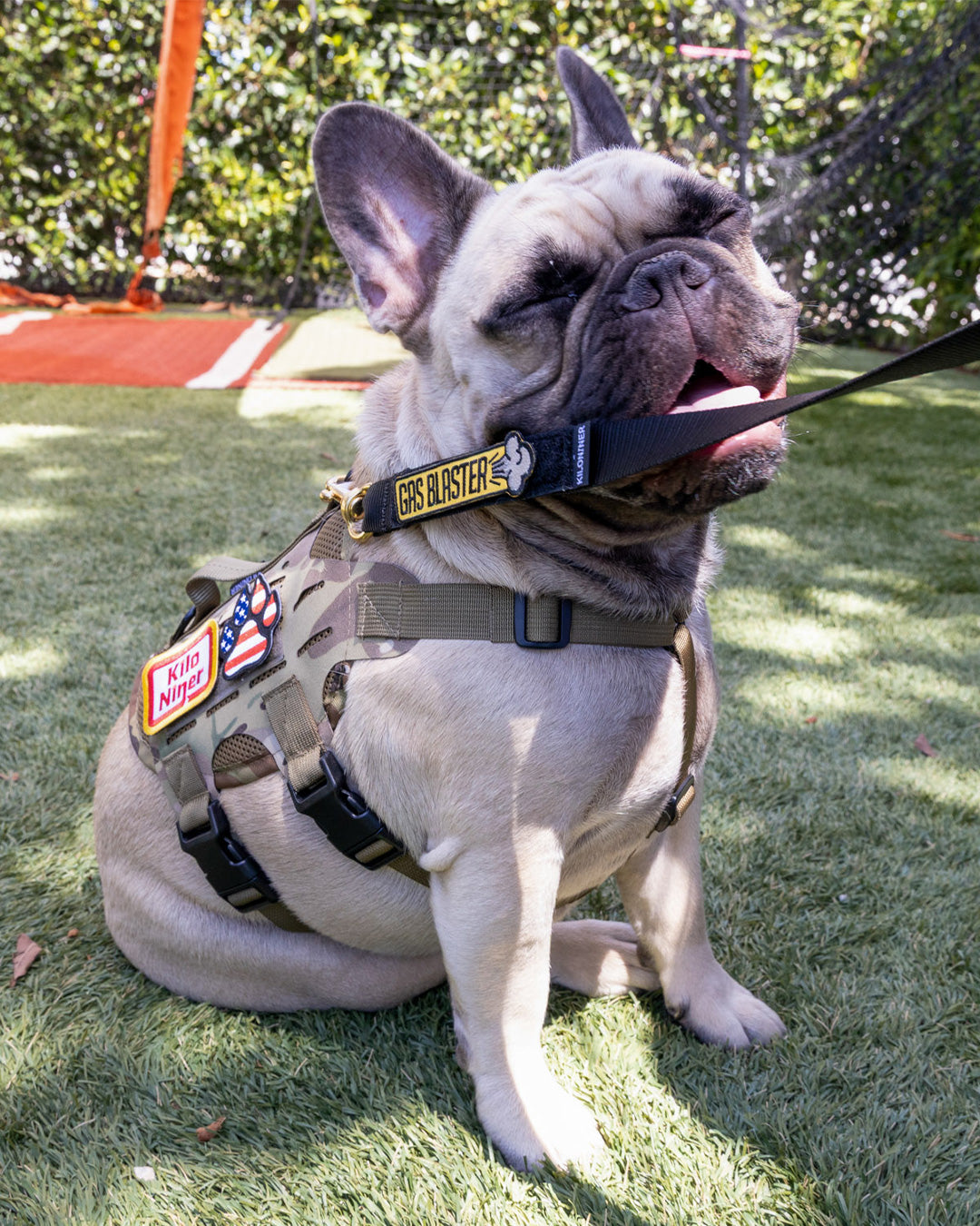 裏面はマジックテープ(ベルクロ生地)なので、アイロンや穴あけの必要も無く、簡単にハーネスやリードに貼り付けてカスタマイズが楽しめます。