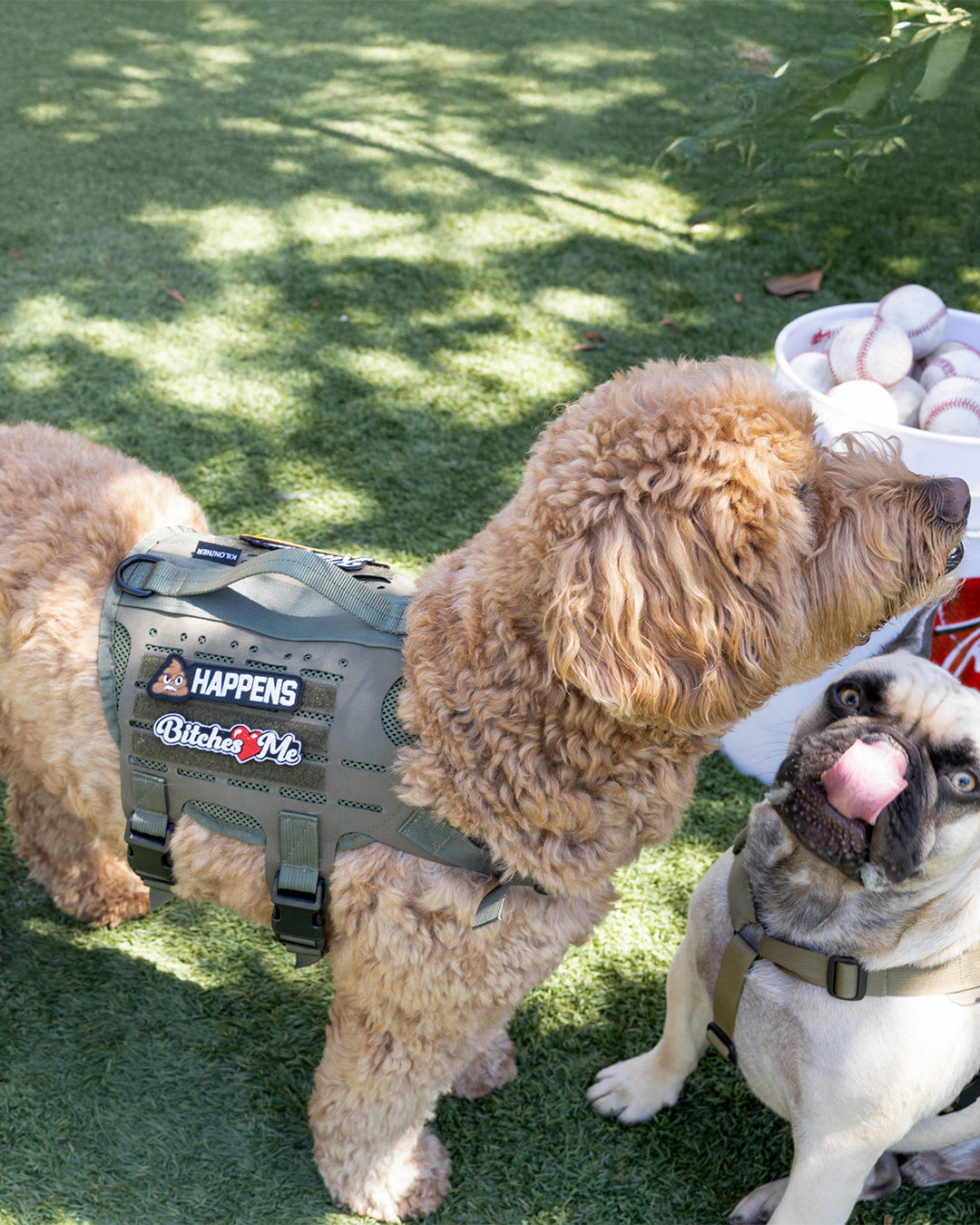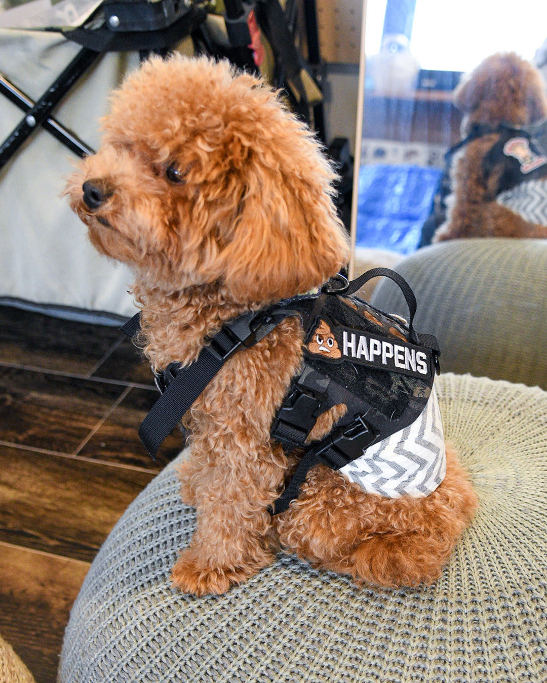裏面はマジックテープ(ベルクロ生地)なので、アイロンや穴あけの必要も無く、簡単にハーネスやリードに貼り付けてカスタマイズが楽しめます。