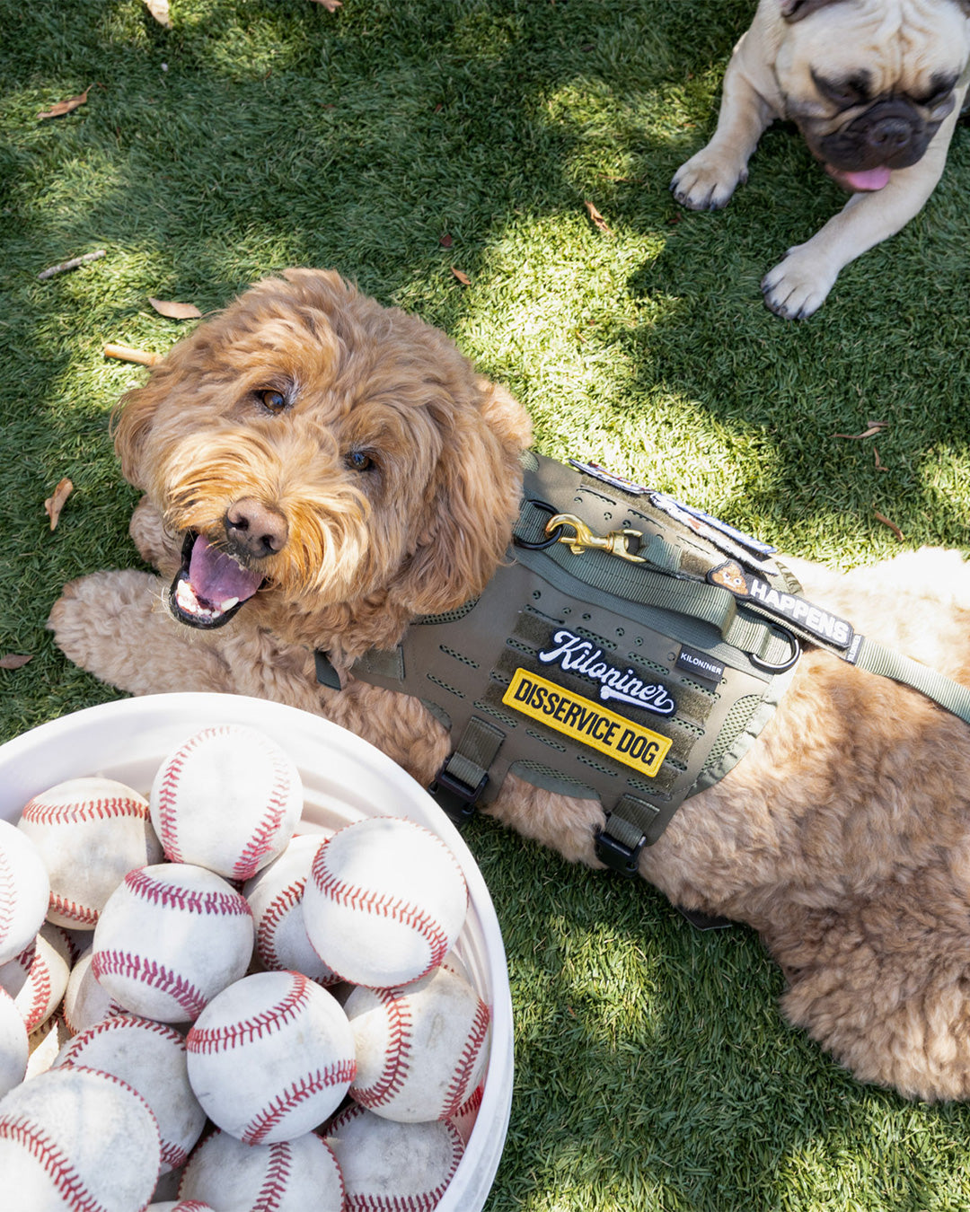裏面はマジックテープ(ベルクロ生地)なので、アイロンや穴あけの必要も無く、簡単にハーネスやリードに貼り付けてカスタマイズが楽しめます。