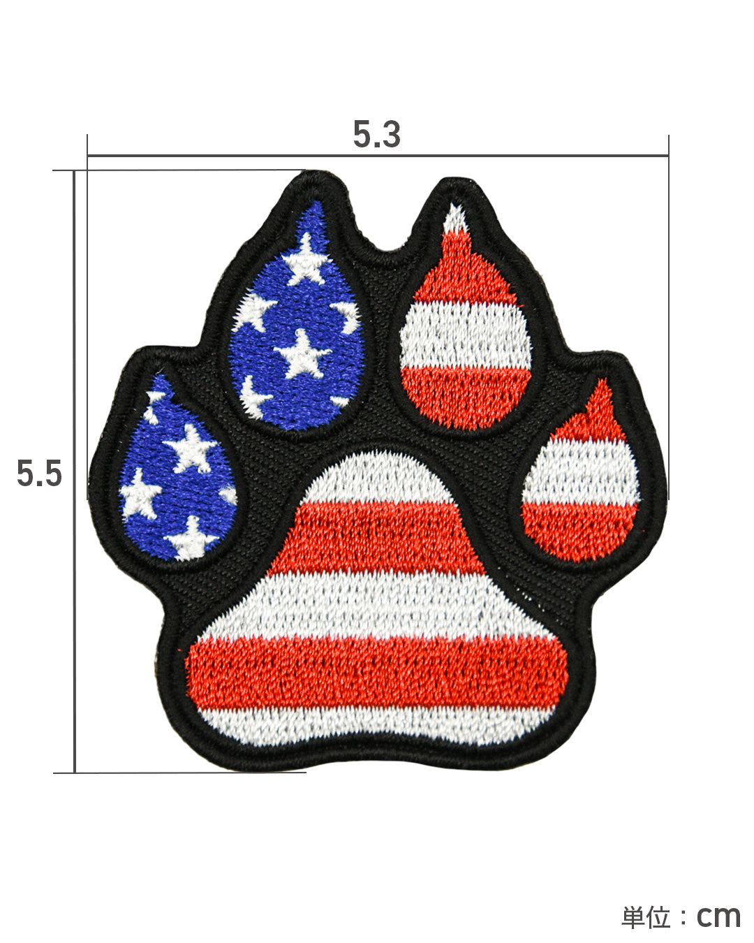 アメリカの国旗と肉球が合わさったカラフルなパッチです。