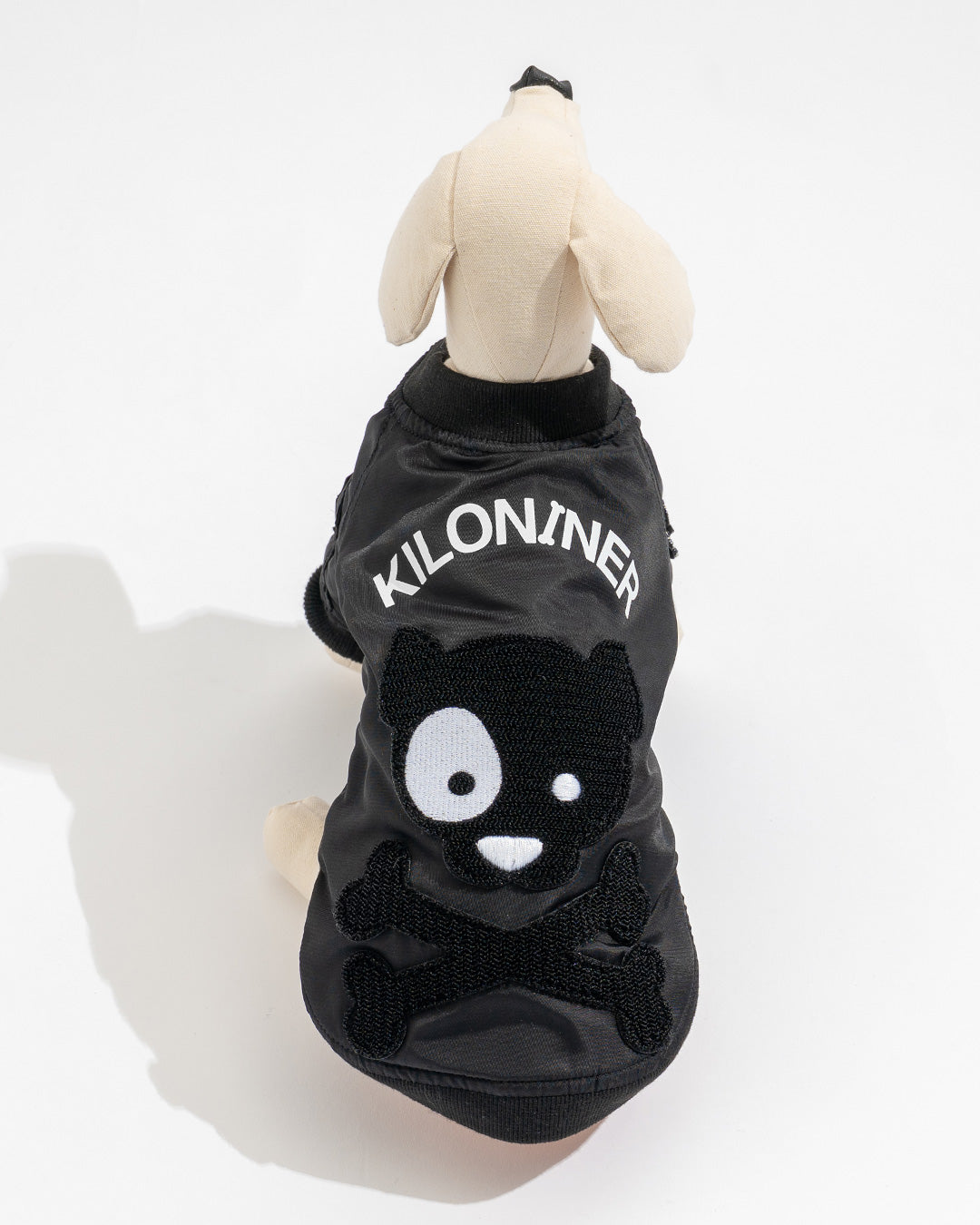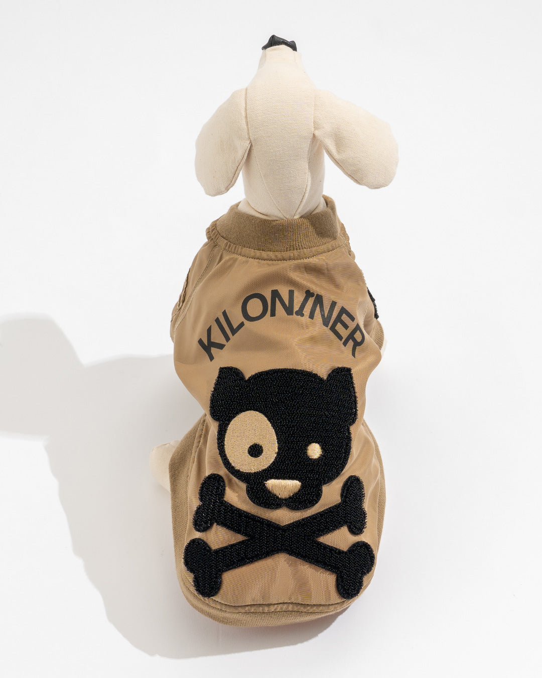 背中のビッグロゴと右肩のクロスボーンはベルクロ仕様だから、お気に入りのパッチで自由にカスタムOK。